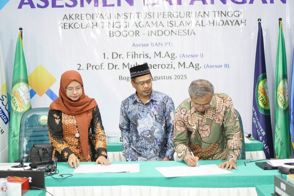 Bogor, 8 Agustus 2025 — Kegiatan Asesmen Lapangan dalam rangka Akreditasi Institusi Perguruan Tinggi di Sekolah Tinggi Agama Islam (STAI) Al-Hidayah Bogor resmi berakhir hari ini. Selama tiga hari, mulai 6 hingga 8 Agustus 2025, dua asesor dari Badan Akreditasi Nasional Perguruan Tinggi (BAN-PT), yaitu Dr. Fihris, M.Ag. (Asesor I) dan Prof. Dr. Muh Saerozi, M.Ag. (Asesor II), telah melakukan serangkaian penilaian mendalam terhadap berbagai aspek kelembagaan kampus.