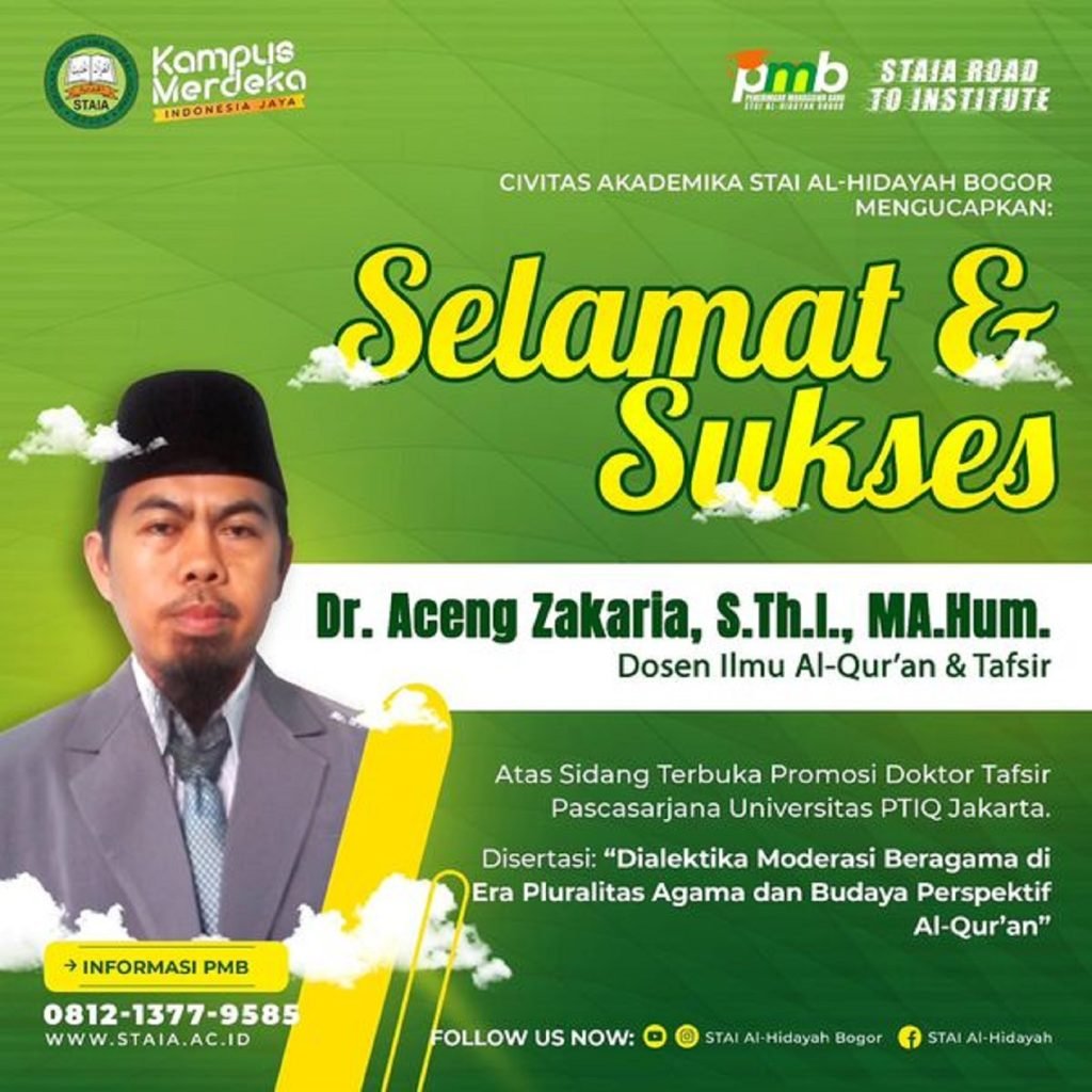 Ketua LPPM STAI Al-Hidayah Dr. Aceng Zakaria Raih Gelar Doktor dari Universitas PTIQ Jakarta dengan Disertasi Tentang Moderasi Beragama