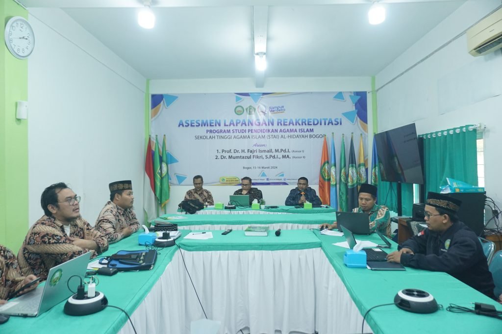 Bogor, 16 Maret 2024 – Setelah dua hari yang penuh dengan pengamatan dan evaluasi, proses asesmen lapangan reakreditasi Program Studi Pendidikan Agama Islam di STAI Al-Hidayah Bogor telah mencapai puncaknya. Hari ini, tanggal 16 Maret 2024, menjadi hari terakhir pelaksanaan asesmen lapangan yang dihadiri oleh tim asesor, yaitu Prof. Dr. H. Fajri Islamil, M.Pd.I. sebagai Asesor 1 dan Dr. Mumtazul Fikri, S.Pd.I., M.A. sebagai Asesor 2.