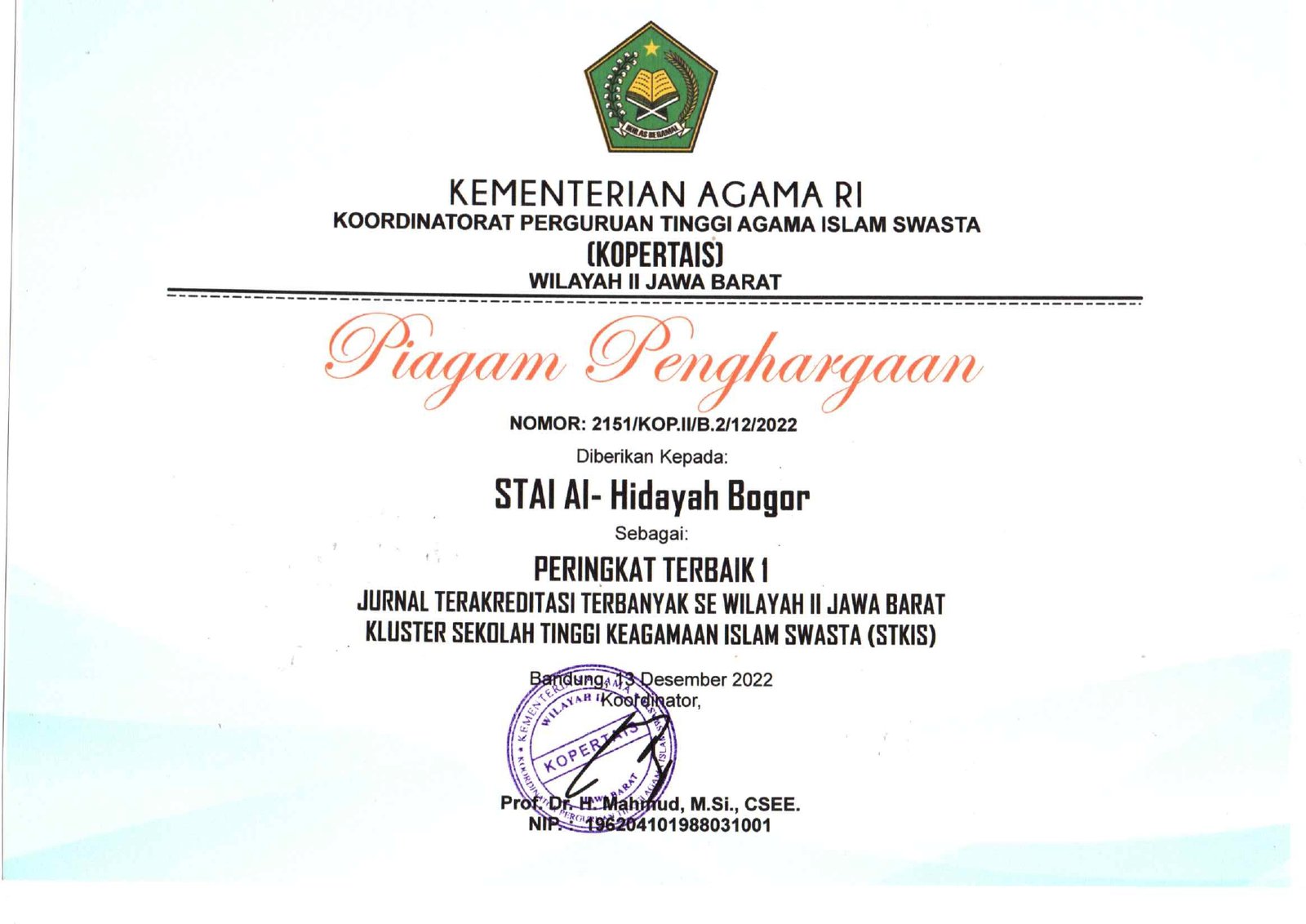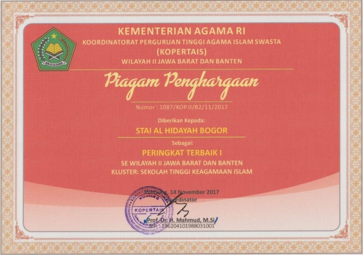Prestasi STAI Al-Hidayah Bogor PRESTASI STAI AL-HIDAYAH BOGOR DESKRIPSI BUKTI KEUNGGULAN STAI AL-HIDAYAH BOGOR