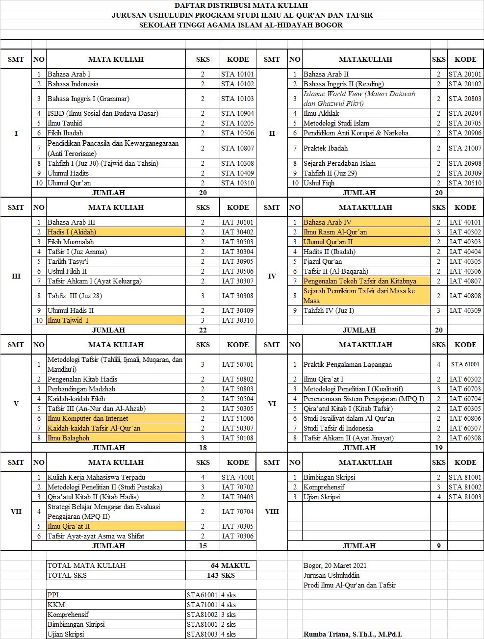 Ketua Prodi : Azam Rumba Triana, M.Pd.I.