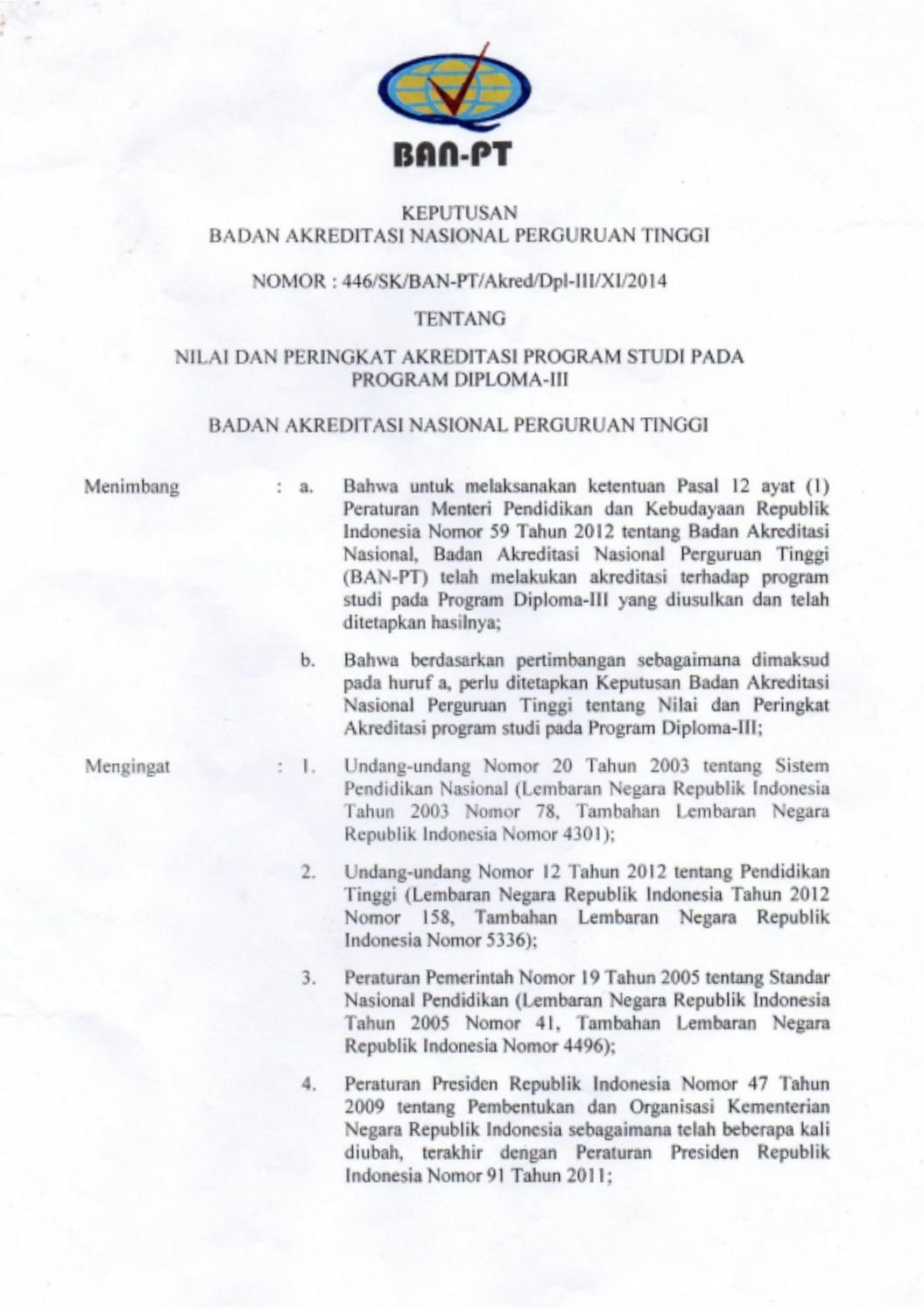 STATUS AKREDITASI