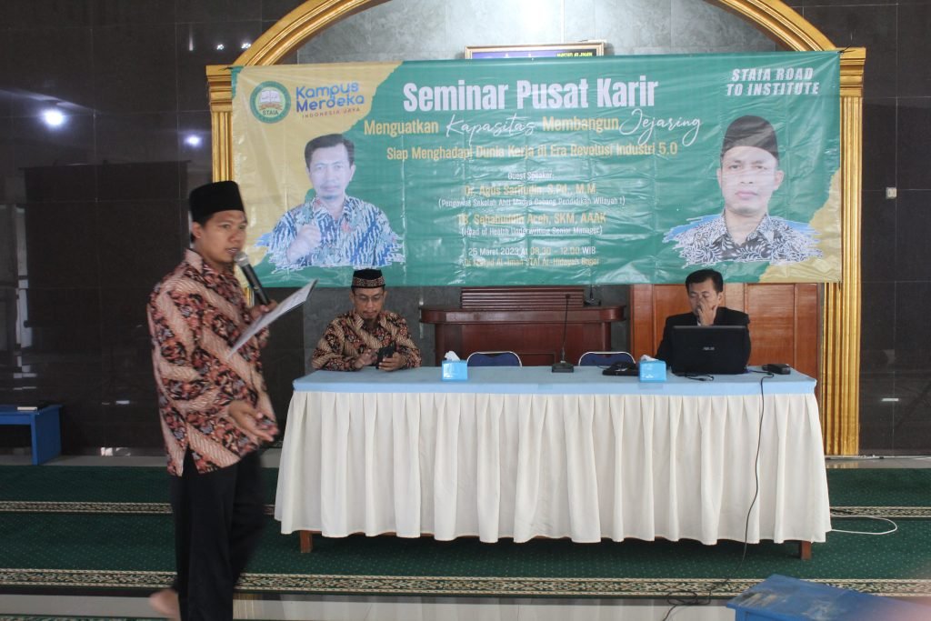 STAIA.AC.ID-Sabtu, 25 Maret 2023 Sekolah Tinggi Agama Islam (STAI) Al-Hidayah Bogor telah menggelar Seminar Pusat Karir bagi mahasiswa tingkat akhir, dengan tema “Menguatkan kapasitas Membangun Jejerin, Siap Menghadapi Dunia Kerja di Era Revolusi Industri 5.0”. Kegiatan Seminar ini merupakan kegiatan rutin tiap tahun akademik yang digelar olah STAI Al-Hidayah Bogor dalam rangka memberikan tambahan wawasan dan kompetensi bagi para mahasiswa, sehingga lulusan STAI Al-Hidayah Bogor nantinya bisa berperan aktif ditengah-tengah masyarakat, mampu dan siap bersaing di Era Revolusi Industri saat ini.